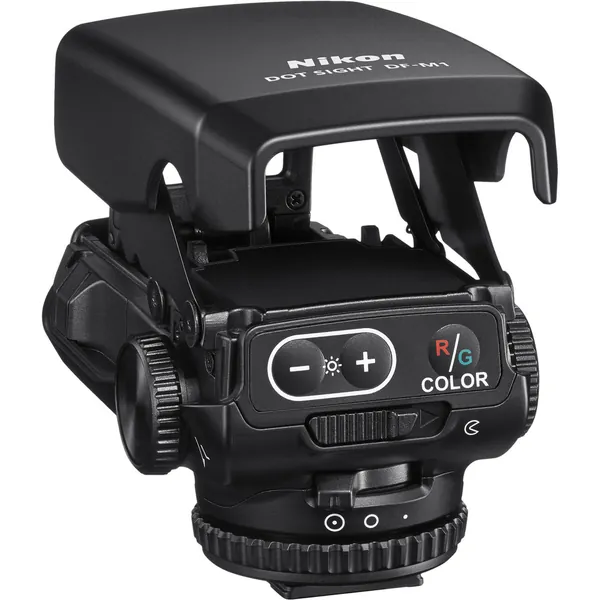 Ideal for acquiring and tracking distant and fast-moving subjects, the DF-M1 Dot Sight from Nikon is dedicated to the COOLPIX P1000 digital camera, and benefits making full use of the extremely long focal length range. This dot sight attaches to the camera via its hot shoe and provides a clear, lag-free means for aligning subjects. It has selectable red and green dot colors, to suit different lighting conditions; adjustable brightness; and its folding design protects it when not in use.