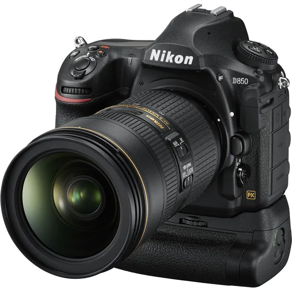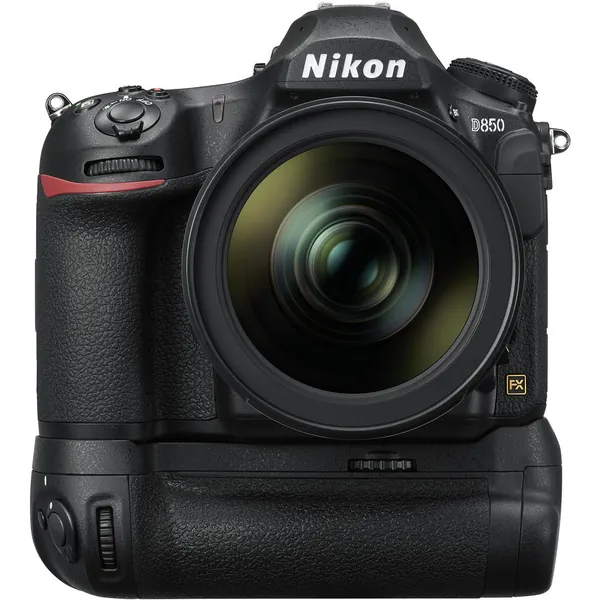 Dedicated to the Nikon D850 DSLR, the MB-D18 Multi-Power Battery Pack offers both enhanced handling capabilities as well as extended battery life. It accepts one additional EN-EL15 lithium-ion battery pack to increase the camera's battery life or, alternatively, eight AA batteries can be used in conjunction with the included MS-D12 AA Battery Holder. An EN-EL18a/b/c battery can also be used in conjunction with an optional BL-5 Battery Chamber Cover in order to achieve a faster 9 fps shooting rate as well as an approximate battery life of 5140 shots per charge. The physical design of the grip improves shooting in the vertical orientation with the inclusion of a secondary shutter release button, AE/AF lock button, multi selector, plus main- and sub-command dials.