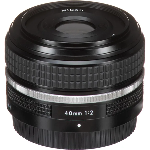 Featuring a stylish, vintage-inspired design, the Nikon NIKKOR Z 40mm f/2 (SE) is a versatile, everyday prime straddling wide-angle and normal fields of view and featuring a bright f/2 maximum aperture. The distinct focal length is wide enough for spontaneous shooting but still tight enough for portraiture and selective focus shooting. Additionally, the lens's compact, portable form factor makes it perfect for walkaround shooting and equally well-suited to use on FX or DX-format camera bodies.