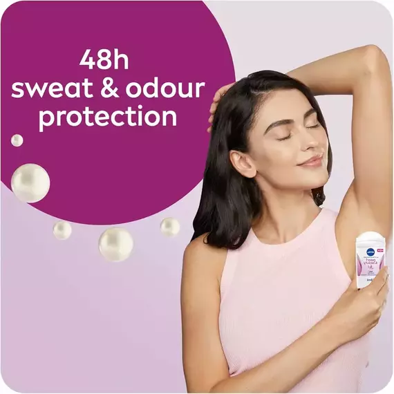 NIVEA Pearl & Beauty Antiperspirant for Women is an innovative formula that beautifies your underarms and gives your skin reliable protection. Gentle formula with 48hours antiperspirant protection and infused with pearl extracts, NIVEA Pearl & Beauty Antiperspirant Deodorant for women evens out your skin tone and leaves it with a long-lasting freshness while keeping away sweat and body odour.