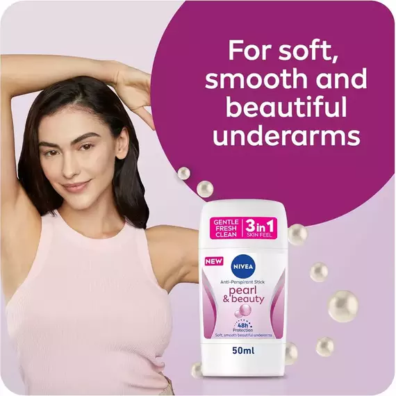 The anti-perspirant stick with patented emulsion technology for gentle protection and smooth application. Provides you with an extra fresh skin fee. Contains pearl extraxt. For smooth and beautiful underarmsl: NIVEA Pearl & Beauty Anti-Perspirant Stick.