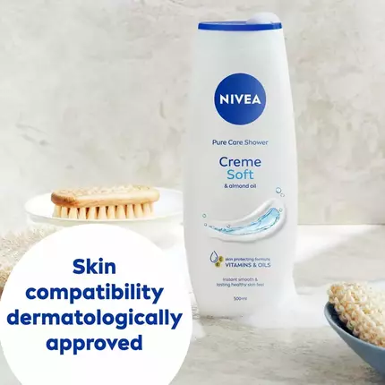 NIVEA Creme Soft Shower Gel provides you with a fresh shower and leaves your skin soft, invigorated and nourished. Enriched with natural almond oil, NIVEA Creme Soft Shower Gel envelops your body with a silky, soft foam and stimulates your senses with its refreshing fragrance. It is formulated with Hydra IQ Technology that keeps your skin feeling moisturized even after towel drying. NIVEA Creme Soft Shower Gel is pH skin balanced, dermatologically approved and suitable for all skin types.