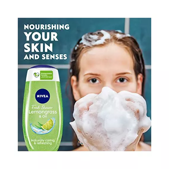 NIVEA Lemongrass & Oil Shower turns your everyday shower into a moment full of freshness and care! NIVEA cares for both your skin & the planet: this formula is 98% biodegradable+ and microplastic-free, in a bottle made out of 96% recycled material*. Fresh & cared skin never felt so good! +as per OECD or equivalent methods *excluding cap -