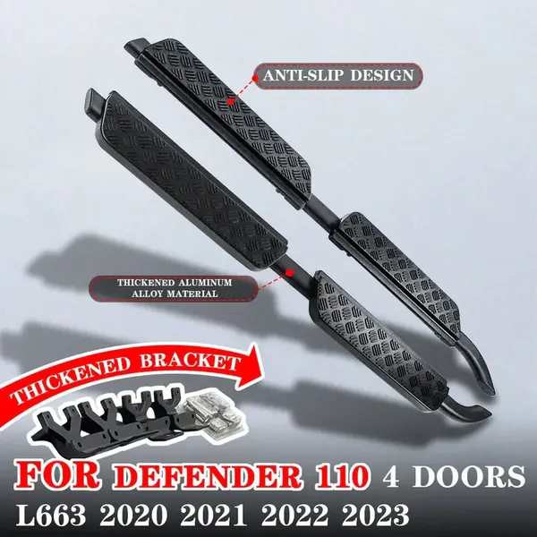 Non-slip Fixed Side Step Running Board Chequer Plate Style 2 Door CC-7003 Compatible With Range Land Rover Defender 110 L663 Lr129997 2020+