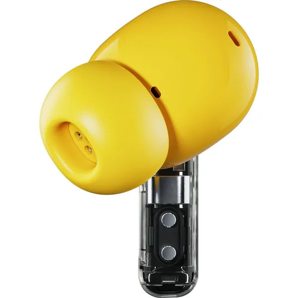 NOTHING has made their driver even more compact. With double the power than Ear (2), Ear (a) delivers an even deeper bass performance. The extra space gives sound waves more room to vibrate. With two new vents, airflow is improved inside the bud. For less distortion and richer overall clarity.
