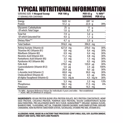 1 Heaped scoop (Approx. 43g), as a dietary supplement, number of servings and size can be varied to meet individual needs.