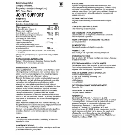 NPL’s Joint Support contains a premium blend of Cissus Quadrangularis and Boswellia Serrata and may assist with reducing joint-related pain and local inflammation associated with intense exercise, repetitive movements, and overuse. This combination of active ingredients may elicit a natural anti-inflammatory response, providing pain-relief to athletes, and other individuals, allowing for optimal training capacity.
