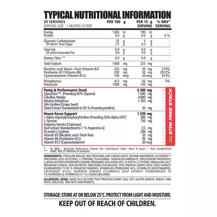NPL’s Vaso Pump has been formulated with GlycerSize™ as a stimulant-free, nitric oxide promoting pre-workout designed to improve energy levels and endurance. Vaso Pump utilises active ingredients in effective dosages which may assist the delivery of nutrient-rich blood to the working muscle, promote hydration, as well as stimulate muscle protein synthesis. The precise combination of active ingredients may facilitate muscle recovery and efficient energy utilisation during intense exercise. Ultimately, Vaso Pump supports athletic performance, including strength, power output, and speed.