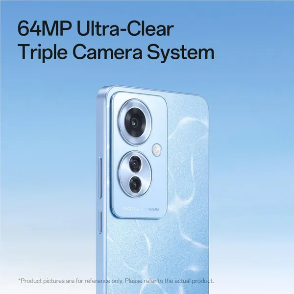 6. Screen size is measured diagonally. OPPO Reno11 F 5G's screen size is 6.7'' as a full rectangle, and its screen-to-body ratio is 93.4% (active area). The actual viewable area is less due to the rounded corners and camera hole. Please refer to the actual product.