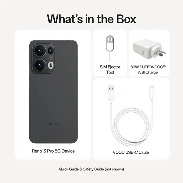 2. OPPO Reno13 Pro 5G is splash, water, and dust resistant and were tested under controlled laboratory conditions with a rating of IP69, IP68, and IP66 under IEC standard 60529. The phone is able to withstand 80°C water jet under a water volume of 14–16 L/min and water pressure of 8000-10000 KPa for 120 seconds in laboratory conditions. The phone is able to have no function damage after staying at 2 meters depth of water at 20-26°C in laboratory conditions. Splash, water, and dust resistance are not permanent conditions. Resistance might decrease as a result of normal wear. Do not attempt to charge a wet phone. Liquid damage is not covered under warranty.