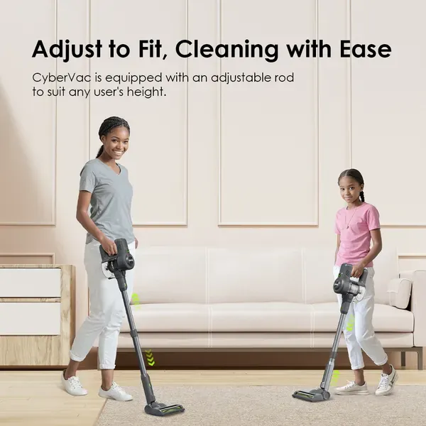 The CyberVac is equipped with an adjustable telescopic rod, which makes it easy to adjust the length to suit the height needs of different users.