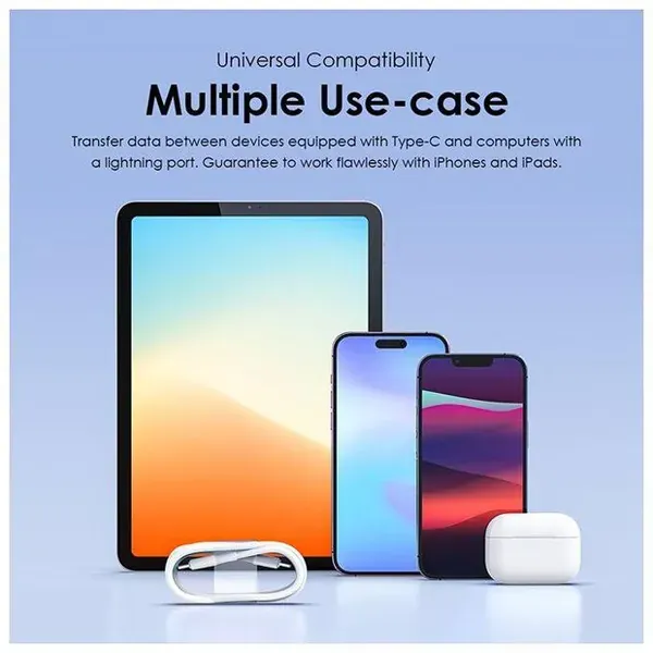 Transfer data between devices equipped with Type-C and computers with a lightning port. Guarantee to work flawlessly with iPhones and iPads.