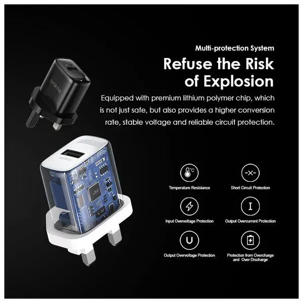 Equipped with oraimo's exclusive chip, AniFast™ charger can intelligently identify the fast-charging protocol of your device to deliver the speediest possible charge.