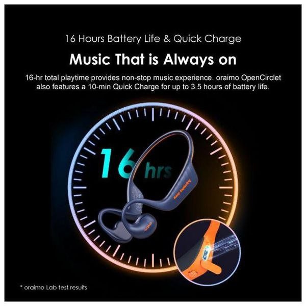 *Based on oraimo Lab test result. Battery life may vary depending on volume, playback source, temperature, environmental interference, and user habits.