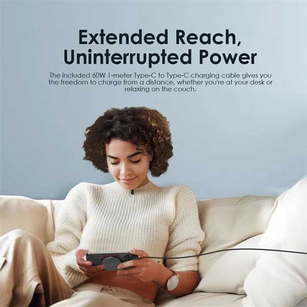 Comes with a 60W, 1-meter Type-C to Type-C charging cable for added convenience.