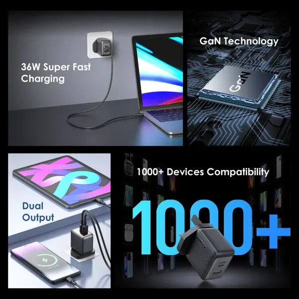 Output1 +Output 2: 18W+18W=36W Max (Dynamic Power Allocation)