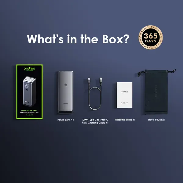 *Oraimo PowerJet 130 Power Bank is compatible with more than 1,000 major devices, including Apple, SAMSUNG, Tecno, Infinix and Mi smartphones and Type-C port charging Laptops such as MacBook Pro 13"/ MacBookPro 14" / MacBook Pro 15"/MacBook Pro 16"/MacBook Air Series; HP Spectre/ Zbook; Google Pixelbook; Dell/Google Pixelbook/Microsoft Suface Book/ThinkPad and more.