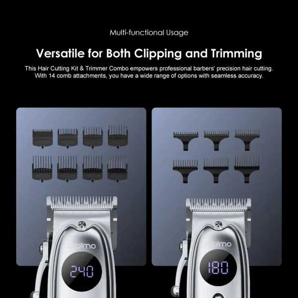 Multi-Functional Usage: Includes both a clipper and a trimmer, complemented by 14 comb attachments, offering versatile options for various hair lengths and styles with precise accuracy.