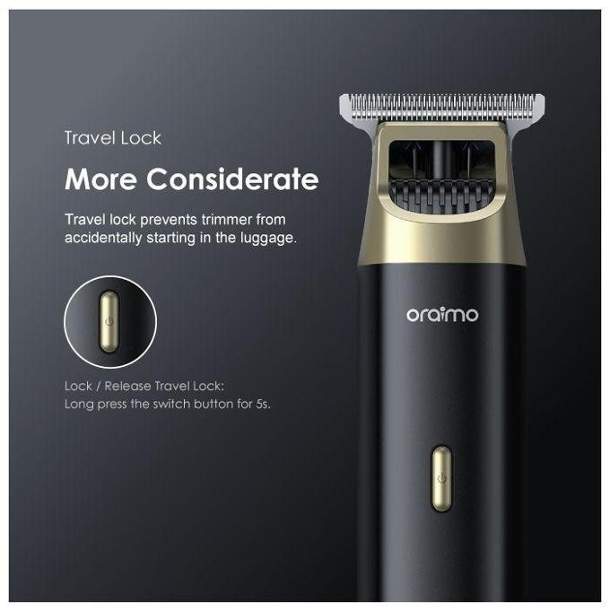 Travel Lock: The travel lock feature provides added convenience and safety. Prevent the trimmer from accidentally starting in your luggage by activating the travel lock with a long press of the switch button. To release the travel lock, perform another long press of the switch button.