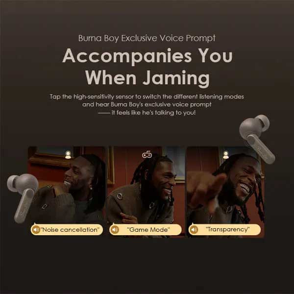 Absolutely blown away by these! The lunar design is so stylish, and the Burna Boy tuned sound is pure bliss with deep bass and excellent ANC. Battery life for days too!
