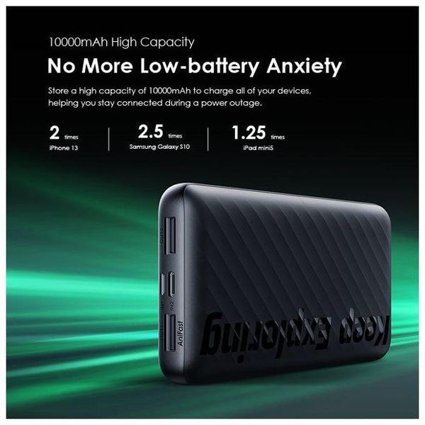- 10000mAh High Capacity: Efficiently charges devices for extended use.