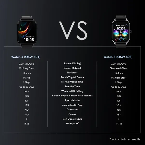 The oraimo Watch 5 is as thin as 10.8 mm and weighs only 41.4 grams. Its aluminum alloy case, paired with a stainless steel digit crown endows itself a stylish nature.