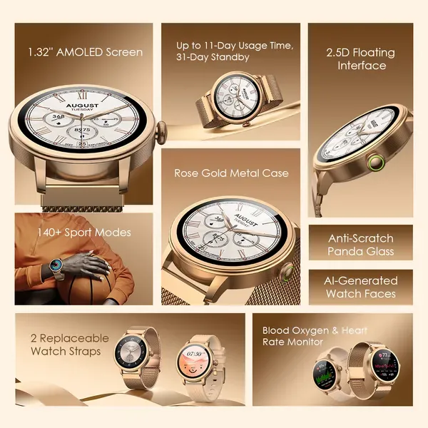 This Watch Muse is a total game-changer! The vivid AMOLED screen is incredibly clear, and I love the elegant rose gold design with two strap options. Plus, the 11-day battery life means I rarely have to think about charging!