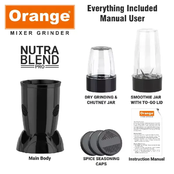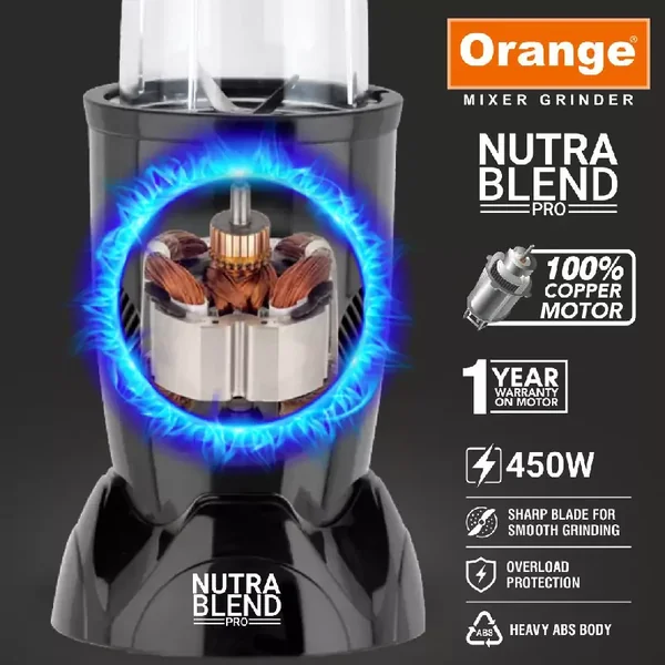 The Orange Bullet Grinder Nutra Blend Pro is a powerful 450W kitchen companion designed for effortless blending and grinding. It combines a high-performance copper motor with surgical-grade stainless steel blades to create fresh juices, smoothies, and dry spices in seconds, all while being easy to clean and store.