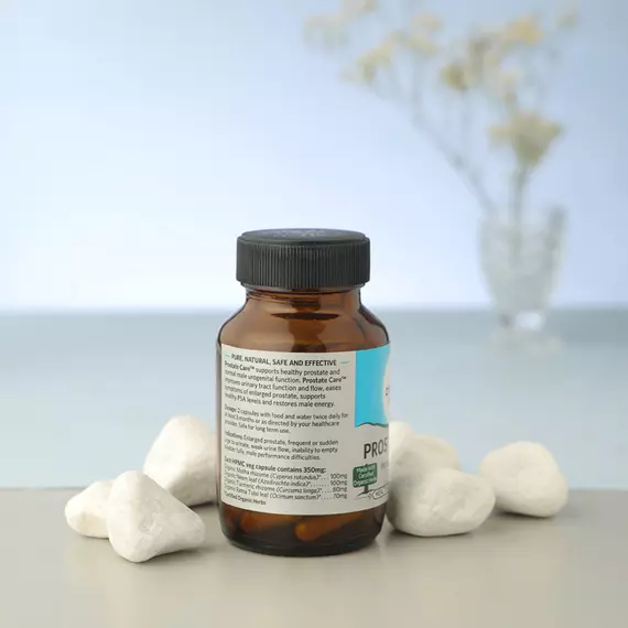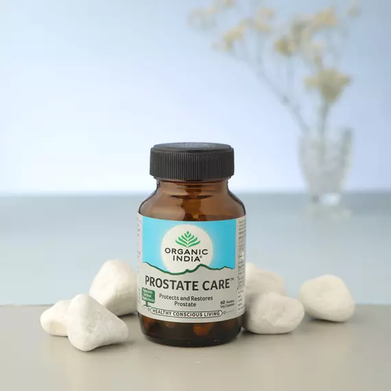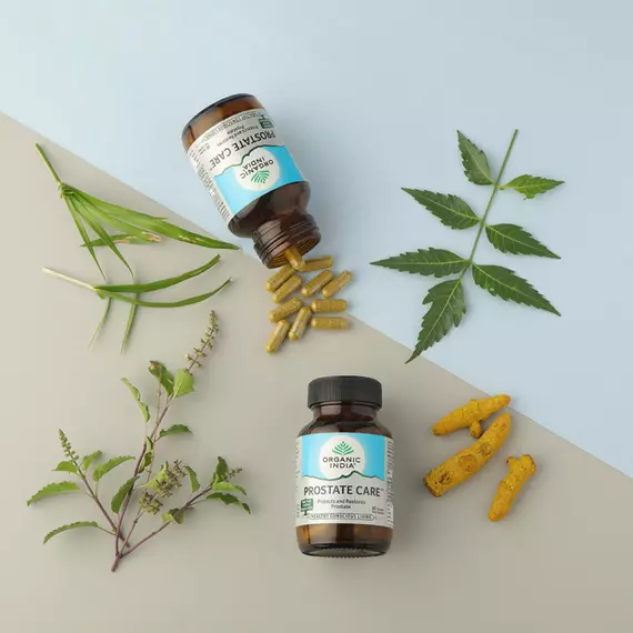 ORGANIC INDIA Prostate Care is a combination of potent Ayurvedic herbs that help to relieve symptoms of enlarged prostate. The powerful synergistic blend of Motha, Neem, Turmeric, and Tulsi enhances urinary tract function to help relieve prostate & bladder control issues and boosts natural immunity and male reproductive vitality.