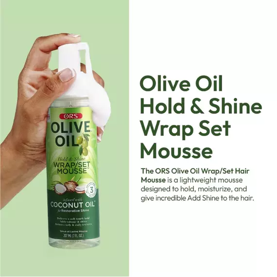 The ORS Olive Oil Wrap/Set Hair Mousse is a lightweight mousse designed to hold, moisturize, and give incredible Add Shine to the hair. This hair care product contains a unique blend of ingredients, including olive oil, which is rich in Vitamin E, and Panthenol to provide moisture to the hair. These ingredients help provide smoother wrapping, molding and longer lasting roller sets. The convenient mousse pump creates fluffy foam that causes a faster drying time. The ORS Olive Oil Wrap/Set Hair Mousse is a lightweight mousse designed to hold, moisturize, and give incredible Add Shine to the hair. This hair care product contains a unique blend of ingredients, including olive oil, which is rich in Vitamin E, and Panthenol to provide moisture to the hair. These ingredients help provide smoother wrapping, molding and longer lasting roller sets. The convenient mousse pump creates fluffy foam that causes a faster drying time.