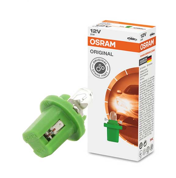 Application : Socket Bulb, (12V, 2W), B8.5d. Light Design : Halogen The cost-effective original spare parts These lamps with OSRAM´s reliable OEM quality feature a wide product range and can be used for instrument and switch lighting.