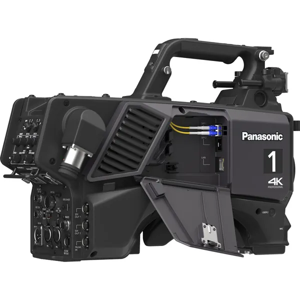 Built around a large 19MP sensor, the AK-UCX100 4K HDR 12G-SDI Studio Camera from Panasonic is ready to meet your live video demands with up to 12G-SDI output, SMPTE ST2110 redundancy, and support for NDI, ST2110, and SRT. This professional broadcast camera features a high 2000 TV-line, UHD 4K resolution video at rates up to 59.94 fps. Ideal for studio, sports broadcasting, and live event use, this versatile camera can simultaneously output HLG (BT.2020) and SDR (BT.709) and offers 2x UHD 4K and 2/3/4x HD high-speed modes. The AK-UCX100 camera offers standalone operation without requiring a CCU, outputting video via its fiber optic and 12G-SDI connectors.