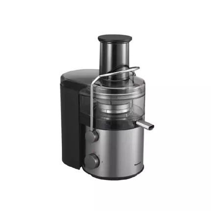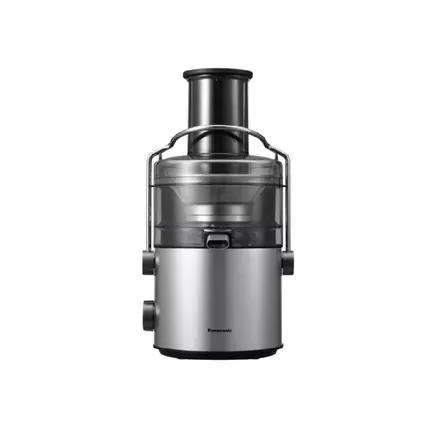 Get the Most Out of Your Fruits for a Healthy Routine. Easy-to-make, delicious and fresh juice is an efficient way to take in dietary fibre and vitamins, to support your daily health. Key Features: Maximum Juice Extraction Using a Powerful Cutter Panasonic's unique Full Metal Spinner efficiently extracts maximum juice, resulting in smooth and pulp-less juice which is easy to drink even for children. The Full Metal Spinner's S-Shaped Cutter firmly cuts through the hard centre of the fruit, and the Low-Angle Cutter thoroughly extracts it. The fine Filter Mesh separates the juice from the pulp so you always get a smooth-textured drink. Large Capacity Suitable for the Whole Family The large 2-litre pulp container capacity makes it possible to juice up to 10 apples or numerous other fruits and vegetables all at once. This saves you both time and effort. Two-Speed Control to Suit Different Ingredients Speed 2: Hard ingredients including apple and carrot. Speed 1: Soft ingredients including watermelon and orange. Stylish & Minimalist Design with Large Juicing Capacity The design maintains a neat appearance and blends in well with all kitchen interiors. The clear container lets you see the juicing process easily. Easier Cleaning The juicer is very easy to clean, as there are fewer parts to wash and it is dishwasher-safe. The juicer lid is slightly curved to prevent pulp from sticking to the top surface of the container. One Machine for Juice and So Much More The exchangeable Blender Mug and Dry Mill give this single appliance a 3-in-1 capability. This lets you make smoothies packed with dietary fibre by including fruit peels and the hard cores of vegetables. The Dry Mill lets you enjoy rich, robust coffee from freshly ground beans, as well as a variety of spices. Securely Lock with a Lever A lever safely locks the cover to the container. This prevents the cover from coming off during use and material from flying out of the container. Overload and Overheating Protection A protection device stops operation if inappropriate ingredients or excess portions overload the motor, or if the motor gets hot. *Max motor locked wattage 1,000 W Drip Stop Simply lift the spout to stop any juice from dripping after use. Specifications: Brand: Panasonic Model: MJ-CB100WTZ Type: Juicer Power supply: 220-240V・50-60Hz Power consumption: 270-320W Motor protection: TCO Max. Motor Locked Wattage: 1,000W Safety standard: IEC, GCC, ECAS EMC: Yes Cord Length: 0.95m Clamp to fix the cord in position: Yes Pulp container Capacity: 2.0L Juice container Capacity: Yes (Plastic 1.5L) Spinner Frame material: Metal Base material: Metal Switch Shape: Rotally Material: Plastic Speed setting: off/1/2 Spout Anti-drip system: Yes Body Colour: Silver Material: Metal Blender max capacity: Yes (Glass 1.35L) Blender working capacity: Yes (Glass 1.0L) Wet & Dry mill: Yes (Glass/Dry & Wet Mill) 50g Brush: Yes Dishwasher safe: Yes Precise and Durable Full Metal Spinner Two-Speed Control Large Feeding Tube: Max. 75-mm Diameter Height: 386mm Width: