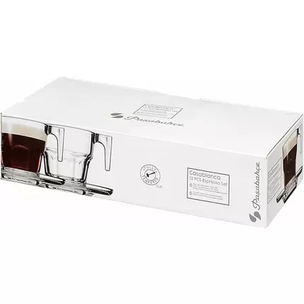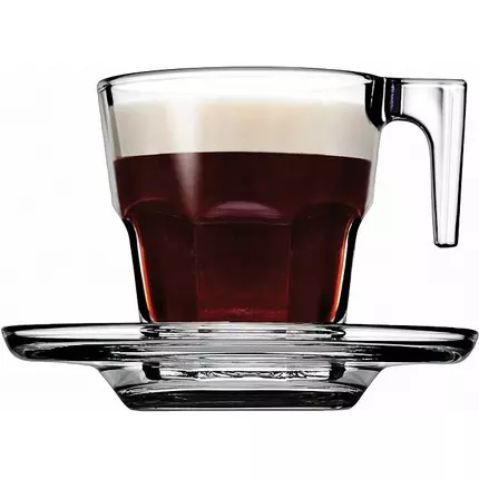 Pasabahce Casablanca 95753 espresso cups with saucers are made of high quality borosilicate glass makes it sturdy, durable and easy for daily use. Fade-proof construction resists catching stains, facilitating easy cleaning. Ideal for serving hot tea and coffee.