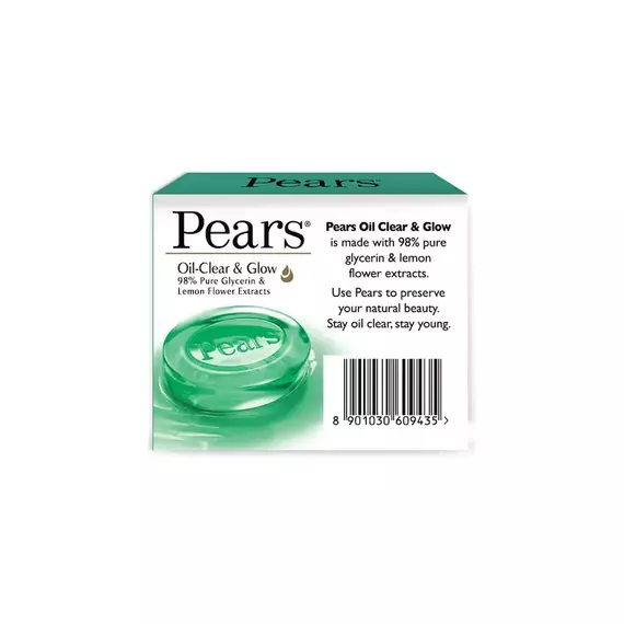 The Pears Oil-Clear & Glow Soap is perfect to ensure the right balance of oil and moisture to your skin. Ensuring clean and dirt-free skin, this gentle soap bar helps to maintain your skin's soft and smooth texture. It is ideal for people with an oily skin texture as this soap reduces excessive oil and controls oil secretion. It maintains the perfect balance for radiant skin, by avoiding dryness and also prevents pimples and acne on oily skin.