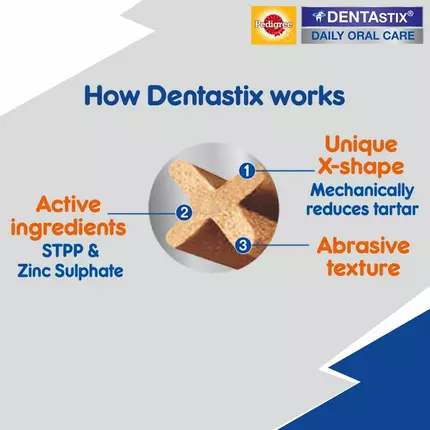 Dog dental chews are a useful way to help keep your dog's teeth clean. Pedigree dentastix feature a unique X-shape that encourages your dog to chew. The combination of the shape along with the texture, helps to scrape away plaque.