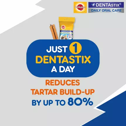 According to Pedigree, 4 out of 5 dogs over the age of 3 have gum disease. When fed daily, Pedigree Dentastix has been scientifically shown to reduce tartar build-up by 80%.