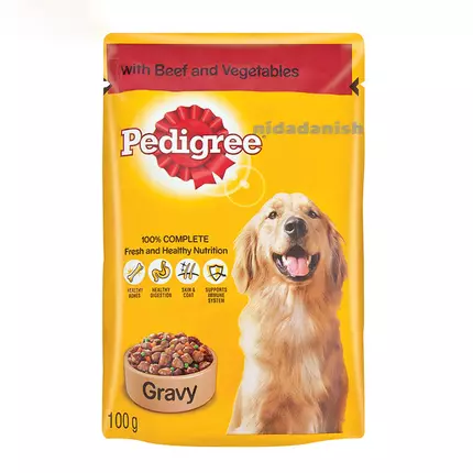 - This wet dog food in gravy contains no artificial colours, flavours or preservatives