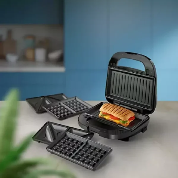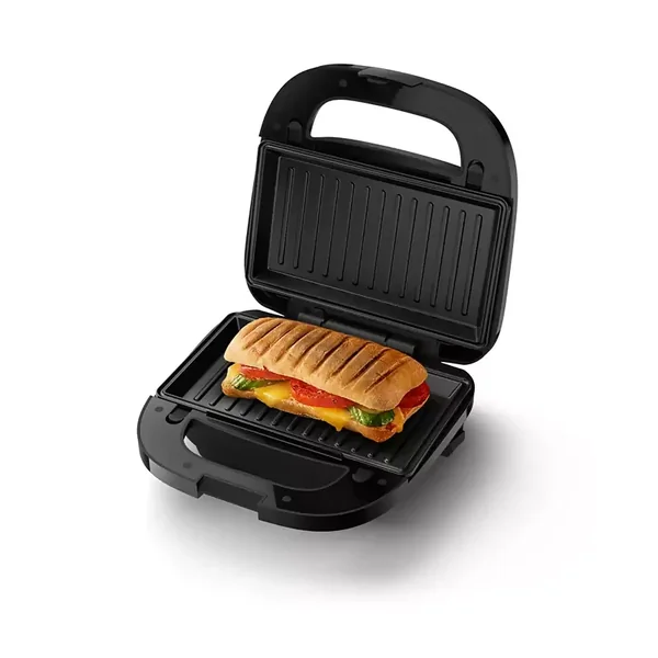 Enjoy crunchy golden paninis, filled sandwiches, and waffles, too. Philips 5000 Series Sandwich Maker heats powerfully and evenly with removable nonstick plates for ultimate convenience and easy cleanup. : 3 sets of plates for paninis, waffles, and sandwiches Interchangeable plates make all your favorites from long crunchy paninis to deep-filled sandwiches and waffles, too! 750 W of power toasts to perfection Rapid heating toasts everything to crisp, golden perfection in this powerful 750 W pan...
