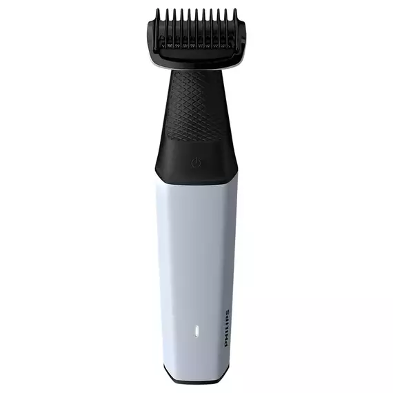 The trimmer is designed to power through hair, without compromise on skin comfort. Use the skin friendly shaver with contour following 2D technology or trim by clicking on the 3mm length comb. Shaving with safety and comfort on your delicate skin The shaver head features patented rounded tips and a hypo-allergenic foil to protect your skin from cuts and nicks while shaving. Bidirectional trimmer and comb to trims in every direction Cut hair that grows in any direction using the bidirectional trimmer and 3mm comb. Pre-trimming is recommended for thicker hair. 100% Showerproof body groomer Your wet and dry body groomer is fully water proof, so you can use it in or out of the shower and clean your groomer easily. For best results, use on dry hair before showering. 40 minutes cordless use High-power rechargeable battery for full body use, with 40 minutes of cordless use. Ergonomic grip for added grooming control Your body groomer is easy to hold and maneuver, with a rubber ergonomic grip for more controlled trimming. Body groomer built to last with no oil required All of our body grooming products are built to last. They come with a 2 year warranty and they never need to be oiled. Features: 1 click-on comb, 3mm Contour following 2D shaver 40 min cordless use Smooth body grooming Safe to use Technical Specifications: Brand: Philips Comb: 1 body comb (3mm) Charging: 8hours full charge Battery type: Ni-MH Run time: 40 minutes Max power consumption: 5W Handle: Ergonomic grip & handling Shaving element: Foil with two pre-trimmers Skin protection system Comfort in sensitive areas Length settings: 1 fixed length setting Wet & Dry: Showerproof and easy cleaning Maintenance free: No oil needed Operation: Cordless use Secured length settings: Yes Charging: USB-A Charging (5V⎓ / ≥1A)