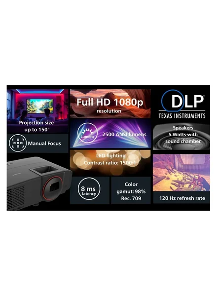 Get stunning visuals in any environment. With an impressive 2500 ANSI lumens of brightness, this powerful projector delivers vibrant, high-definition imagery for both gaming and cinematic experiences.