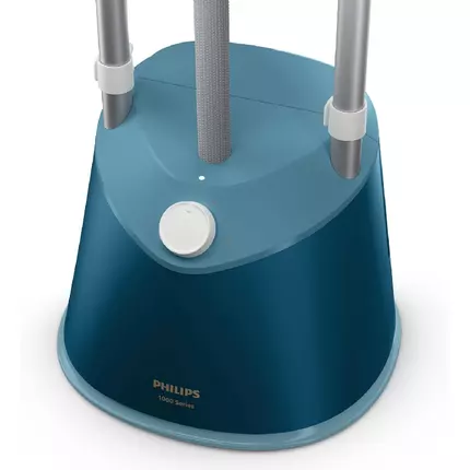 The Philips Garment Steamer 1000 Series is your everyday companion for easy de-wrinkling. Thanks to multiple steam settings and the large water tank, you can conveniently steam all kinds of fabrics quickly and effectively without interruptions. Key Features: Large and detachable water tank The large 1.8L water tank can be detached for easy refill to ensure long steaming sessions with no interruptions. Continuous steam up to 36g/min The steam engine produces 36g/min of powerful continuous steam to enable de-wrinkling with only a few strokes Multiple steam settings for better results Set your preferred steam setting for optimal results on different fabric. Use low steam for thinner fabrics and a more powerful setting for thicker fabrics and coats. Integrated Styleboard for enhanced support The StyleBoard provides reliable support while steaming. Simply press the fabric between the steam plate and board for crisp results. 45 seconds heat up time, to be ready in no time Whenever you need it, the steamer is ready in 45 seconds to help you with last minute touch-ups. Kills 99.9% of bacteria and dust mites* to refresh garments Prolonged hot steam kills 99.9% of bacteria and dust mites* and removes odors to keep garments fresh. Adjustable double poles for various height settings The double poles can be adjusted to the desired height to hang your garments and steam them comfortably. Integrated accessories for improved performance Extra accessories are included with the steamer to enhance your steaming experience: a heat-proof glove for extra protection, a fabric brush for deeper steam penetration and a hanger on top for better convenience. Safe on all ironable fabrics The steamer is safe to use on all ironable fabrics and garments. The steam plate can be safely pressed against any clothing with no risk of burning; a great solution for delicate fabrics like silk. Specifications: Brand: Philips Model: STE1040/26 Type: Garment Steamer Voltage: 220-240 V Material steam plate: Plastic Pole(s): Double poles Integrated wheels: No Power: 1800 W Country of production: China Steam rate: 36 g/min Steam boost: No Steam settings: 3 Steam trigger: No Water tank: 1.8L detachable Accessories: Hanger, Glove, Brush Heat up time: < 1 minute(s) Safe on all ironable fabrics: Even delicates like silk Power cord length: 1.5 m Hose length: 1.33 m Iron dock: Yes, frontal, on top Automatic shut-off: No Limescale management: Easy rinse Color: Blue Packaging dimensions (WxHxL): 35 x 34.7 x 42.7 cm Total weight with packaging: 5.00 kg Dimensions of the steamplate: 55.67 cm² Dimensions of the ironing mat (W x H x L): 32.7 x 60.8 cm Weight of the steamer head: 270 g Total weight of the product: 3.23 kg Product dimensions (W x H x L) stowed away: 30.3 x 117.1 x 31.2 cm Product dimensions (W x H x L) fully extended: 30.3 x 168.2 x 43.4 cm
