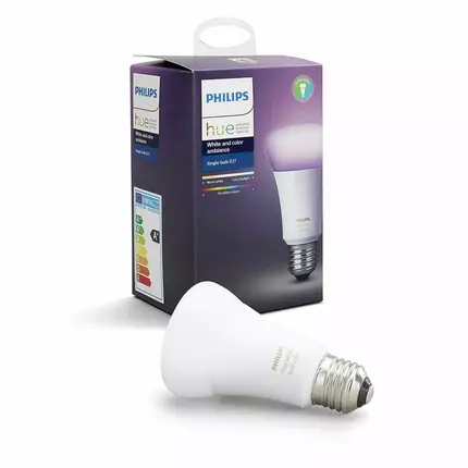 Give your largest spaces bright, colorful smart light with the E27 smart bulb. With a brightness equivalent to a traditional 100 W bulb, these bulbs can fill living rooms, kitchens, and more with color. Features: What's required? – nothing This product works out of the box with the free ‘Philips Hue Bluetooth’ app. Simply screw in your new Bulb and connect to the Bluetooth app for in room smart lighting control Get started in no time – With no complex installation required you can start controlling your smart LED lights straight out of the box with your smart device or voice. Discover the easiest way to control your lighting Play with colour - Choose from 16 million colours including warm to cool White light to create an ambiance that suits any mood. Play with colour to create the perfect ambiance for film nights, parties, bedtime stories, or to just sit back and unwind Control lights with your voice - Works with all echo smart speakers/displays and Google nest devices for hands-free voice control (Philips Hue bridge (sold separately) is required for Echo 1st Gen and echo Dot 1st Gen) Unlock your homes full potential – add a Philips Hue bridge (sold separately, optional) to your cart and unlock full home Control, either when you’re home or away