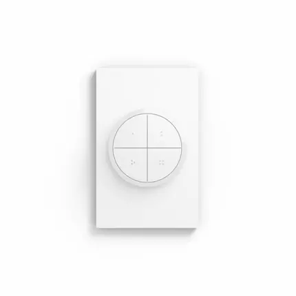 Features: Tap dial switch: Control up to three Rooms or a Zone with each individual button of the Tap dial switch, available in black or white. Turn the dial to dim and brighten the lights. Mount it to the wall, place it on a magnetic surface, or use it as a remote control Convenient, customizable control: Handy smart switches give you immediate control of your lights throughout your home. Convenient versatility: Control your entire smart lighting system from anywhere in your home — without your phone or tablet. The right light, every time: Effortlessly switch the room's light scene or get the right light based on the time of day. Intuitive design: Made to be used by anyone, Philips Hue smart switches are the simplest way to control your lights. Control your way: Philips Hue accessories are versatile: set up, program, and use exactly how you want. Expertly designed, easy to use: Wireless and effortlessly installed, smart light switches were made to make smart lighting simple. Personalize in the Hue app: Easily select preset light scenes or customize your switch's settings to match the time of day. One-click control: No need to navigate through the app — just one push controls your lights. Dim and brighten instantly: Our smart switches install in seconds without the need to rewire, letting you dim and brighten your lights right out of the box.