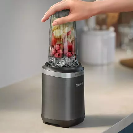 Enrich your culinary canvas with Philips 5000 Series Blender. Enjoy finest blends even from the recipes with frozen fruits, ice cubes, and nuts. Sleek design for your kitchen counter. Detachable dishwasher-safe parts for easy cleaning. Key Features: Finest blends with ProBlend Plus technology Motor, blades, and tumbler designed to work together for perfect results so that you can have finest blends even from the recipes with ice cubes, nuts, and frozen fruits. 1000 W ProBlend Plus motor for effortless blending The ProBlend Plus motor creates a fast circulation of the ingredients for effortless blending ProBlend Plus blades for silky-smooth texture Long, thick, and sharp 6 blades crush and blend the hardest ingredients into finest texture ProBlend Plus tumbler for perfect circulation of ingredients Ribs in the tumblers push the ingredients back to the circulation so that your ingredients are evenly blended for smooth results. 300 ml small cup with flat blade for coffee beans and spices Enjoy freshly ground coffee and spices at home with 300 ml small cup and flat blade. Use them instantly or pop on the lid to store for later. The cup is made with Tritan from Eastman, it is 100% BPA free, shatter-resistant, and dishwasher-safe. Elegant compact design suits every kitchen Add stylish touch to your kitchen. Stainless steel design with a compact footprint and detachable parts for easy storage. Versatile blender makes all your favorite recipes Enjoy a wide variety of homemade recipes; velvety smoothies, creamy shakes, thick rich sauces, and freshly ground coffee. Press and twist for one-touch simplicity The press-and-twist tumbler eliminates buttons and dials. Blend effortlessly, all in one simple motion. Detachable blades for easy cleaning Rinse the detachable blades under the tap or pop them in the dishwasher for thorough cleaning. Dishwasher-safe for carefree daily use All detachable parts are easy to rinse and dishwasher safe. Durable tumblers and cups made with Tritan from Eastman withstand daily wash cycles for long-lasting enjoyment. 700 and 500 ml tumblers with lids for storage or on-the-go Blend and go with the handy 700 ml and 500 ml tumblers. Make your daily smoothie, then pop on a leak-proof lid to take it with you. Or store it in the fridge for later. The tumblers are made with Tritan from Eastman, it is 100% BPA free, shatter-resistant, and dishwasher-safe. HomeID app for all the inspiration you need Discover a world of delicious recipes! Explore our HomeID app for tasty drinks, soups, sauces and more plus tips and guidance for using your blender. Specifications: Brand: Philips Model: HR2767 Type: Blender Color(s): Black Material housing: Metal & Plastic with metallic ring (painted) Material jar: Tritan Plastic Material blade: Stainless steel Voltage: 220-240 V Power: 1000 W Cord length: 0.85 m Frequency: 50/60 Hz Effective capacity: 700 +500 +300 L Weight of product: 2.23 kg Item length: 14.4cm Item width: 14cm Item height: 38.3cm Speeds: 1 speed and manual Pulse operation Type of lid: (2x) Sport lid & Flat lid Dishwasher safe: Detachable parts are dishwasher safe Blade: 6-star blade & 2-star blade Included accessories: 300ml tumbler, 500 ml tumbler, drinking caps , 1 lid