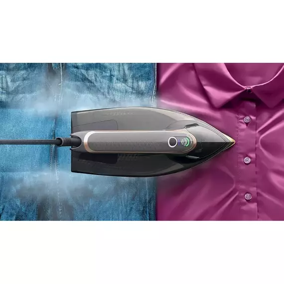 The Philips Azur 8000 Series Steam Iron 3000W DST8041 Black is a powerful and efficient iron that will make your ironing tasks a breeze. With its 3000W power, it heats up quickly and delivers a consistent steam output for fast and effective wrinkle removal. The iron features a durable soleplate that glides smoothly over fabrics, and the advanced steam technology ensures deep penetration into the fibres for thorough ironing. The iron also has a large water tank capacity, so you can iron for longer without the need for frequent refills. Its sleek black design adds a touch of elegance to your ironing routine. One optimal temperature setting, for no burns guaranteed One optimal setting for all ironable fabrics. For no burns, guaranteed. Thanks to OptimalTEMP technology, we guarantee this iron will never cause burns to any ironable fabric and you can iron everything from jeans to silk, from linen to cashmere safely, in any order, without waiting for the temperature to adjust or pre-sorting clothes. SteamGlide Elite soleplate for ultimate gliding & durability Smoothly glide over creases with the super-smooth SteamGlide Elite soleplate that is gentle on your clothes. Super-smooth SteamGlide Elite soleplate is durable, scratch-resistant and easy to keep clean. Iron effortlessly with intelligent automatic steam Ensure your ironing is completed fast and with minimal effort, with the new motion sensor technology that recognizes when you move the iron to release steam automatically. Quick calc release for long lasting performance The quick calc release helps to maintain peak performance by removing calcium build-up or limescale. Up to 80g/min of strong continuous steam output With a continuous steam output of 80g/min, no glide over your garments is wasted so you can remove creases faster. 3000W for quick heat-up and powerful performance Get started on your ironing in no time with more power for fast heat-up. 260g turbo steam tackles even the most stubborn creases The extra long steam boost delivers more power for removing tough creases from thicker fabrics like your favorite pair of jeans. Up to 260g of turbo steam for even more powerful ironing. Iron more in one go with the 350ml water tank Fewer refills are required thanks to a large 350ml water tank. So you can iron more clothes in one go. Auto shut-off after 8 minutes To give you peace of mind the steam iron automatically switches itself off after 8 minutes. Vertical shots of steam for hanging clothes The vertical shots of steam let you freshen up garments on the hanger and remove creases from curtains as they hang. Press and release the steam boost trigger for shots of steam on demand. Features: 3000W Power 80g/min continuous steam 260g Turbo steam boost No burns guaranteed Vertical steaming for hanging fabrics Iron more in one go with the 350ml water tank Technical Specifications: Calc clean solution: Quick Calc Release Weight of iron: 1.78kg Safe for all fabrics: Yes Water tank capacity: 350nm Soleplate name: SteamGlide Elite Rosecopper Drip stop: Yes Tap water suitable: Yes Power cord length: 2.5m Integrated power plug: Yes Auto shut-off: Yes Reaching tricky areas: Pointed tip OptimalTEMP technology: Yes Continuous steam output: 80g/min Power: 3000W Turbo steam: Yes Shot of steam: 260g Vertical Position: Shots of steam on demand