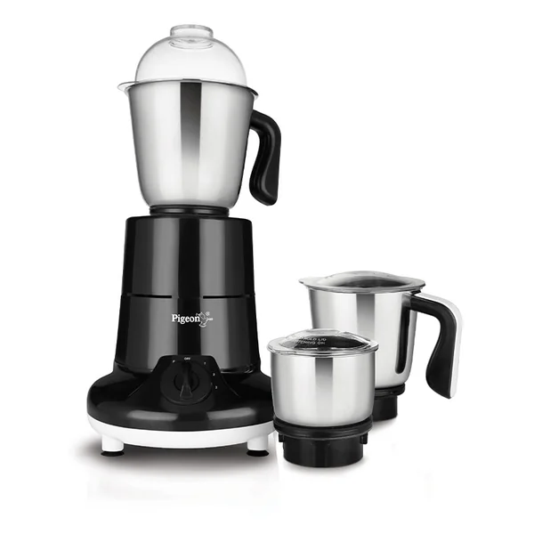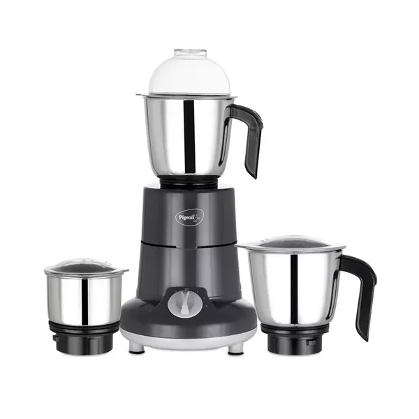 The Pigeon Especial Mixer Grinder is a powerful 750-watt kitchen appliance designed for heavy-duty grinding tasks. It comes with three durable stainless steel jars (1.5L, 1L, and 0.4L chutney jar) to handle everything from tough dry grinding to blending and chutney making, all in a compact and efficient design.