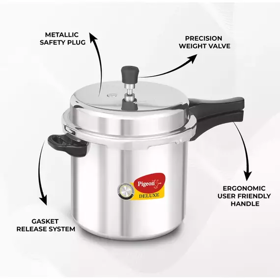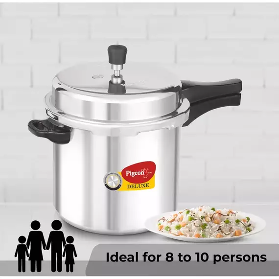 Pigeon is one of the most trusted Kitchenware brand in India. Millions of families across the nation trust our products for their superior quality and innovative designs. Our company strives to provide you with the products that last long and work the best. With our range of premium quality stainless steel products, we aim to bring joy, flexibility, and satisfaction to your modern home. Brand Pigeon Capacity 10 litres Material Aluminium Closure Type Outer Lid Colour Silver Finish Type Aluminium Special Feature Gas Stovetop Compatible Product Dimensions 26.8D x 43.8W x 28.6H Centimeters Item Weight 3 Kilograms Control Method Touch The highly appreciated Pigon Pressure cooker comes with an induction base and a host of other top-of-the line features. Manufactured from virgin Aluminium to ensure zero contamination, the cooker boasts of high quality raw materials. Made From High Grade Virgin Aluminium Conforming Ergonomic User Friendly Handle Nitrile Gasket Conforming To food grade Standard Gasket Release System Precision System Precision Weight Valve Metallic Safety Plu Made from high quality virgin aluminium this pressure cooker is built for long-lasting durability while providing excellent ease of use. These cookers comes with an easy grip and stay cool handle that allows you to carry it even when the cookware is hot. The gasket release system serves as yet another safe outlet for pressure thereby giving you safe cooking experience. Specially formulated food grade gasket. Does not impart color, taste or odour to the food. Cook the traditional way with Pigeon pressure cooker that is only gas top compatible. Pigeon pressure cooker comes with precision designed weight set to regulate steam pressure.