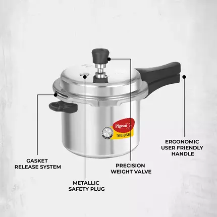Pigeon is one of the most trusted Kitchenware brand in India. Millions of families across the nation trust our products for their superior quality and innovative designs. Our company strives to provide you with the products that last long and work the best. With our range of premium quality stainless steel products, we aim to bring joy, flexibility, and satisfaction to your modern home. Brand Pigeon Capacity 3 litres Material Aluminium Colour Silver Special Feature Gas Stovetop Compatible, Induction Stovetop Compatible Wattage 220 Watts Product Dimensions 21D x 31W x 18H Centimeters Control Method Touch Controller Type Hand Control Operation Mode Manual Is Dishwasher Safe Yes Manufacturer Stovekraft Limited Country of Origin India Gasket Release System (GRS) and Gasket release vent system (GSRV) for enhanced safety Made From High Grade Virgin Alluminium Conforming Ergonomic User Friendly Handle Nitrile Gasket Conforming To food grade Standard Gasket Release System Precision System Precision Weight Valve Mettalic Safety Plug Made from high quality virgin aluminium this pressure cooker is built for long-lasting durability while providing excellent ease of use. These cookers comes with an easy grip and stay cool handle that allows you to carry it even when the cookware is hot. The gasket release system serves as yet another safe outlet for pressure thereby giving you safe cooking experience. Specially formulated food grade gasket. Does not impart color, taste or odour to the food. Cook the traditional way with Pigeon pressure cooker that is only gas top compatible. Pigeon pressure cooker comes with precision designed weight set to regulate steam pressure.