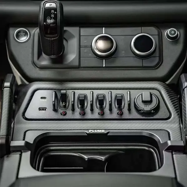 COMPATIBLE WITH RANGE LAND ROVER DEFENDER 2020-2025 PLUMB M-ONE CENTRAL CONTROL SYSTEM 4 WAY LIGHT SWITCH CENTRAL CONTROL CARBON FIBER ARMREST REFIT PLUMB-008